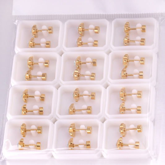 Regular price From $7.00 USDRegular priceUnit price / perSale price From $7.00 USD12 pairs 3mm/4mm/5mm/6mm/7mm steel/golden four-grip round white/black diamond screw plugs