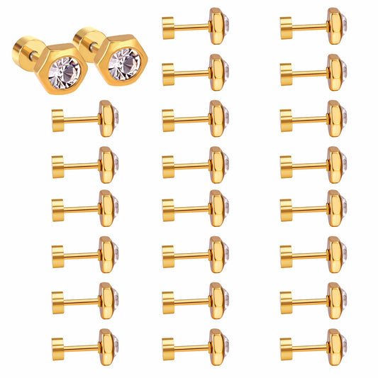12 pairs 6mm steel/gold hexagonal mixed drill/white diamond screw plugs