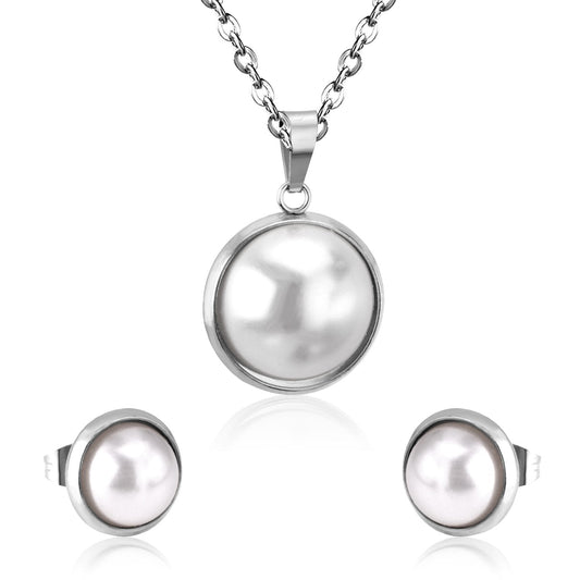 Half Imitation Pearl Stainless Steel Necklace Earrings Set Gold/Silver Color For Woman Wedding Jewellry Accessories