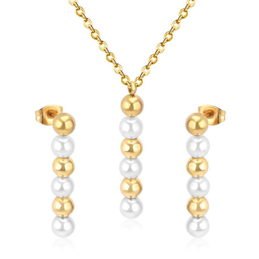Stainless Steel Jewelry Sets For Women Girls Fake Pearl Earrings Necklace Wedding Dubai Indian Bridal Jewelry Set
