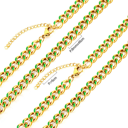 Stainless Steel 18k Gold Plated Green Drip Oil Chains