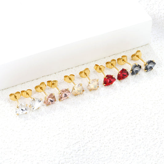 Regular price $6.65 USDRegular priceUnit price / perSale price $6.65 USD3 pairs of white/mineral black/red/light pink/champagne color 7mm equilateral triangle diamond earrings set Gold color