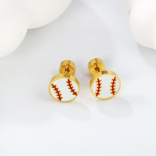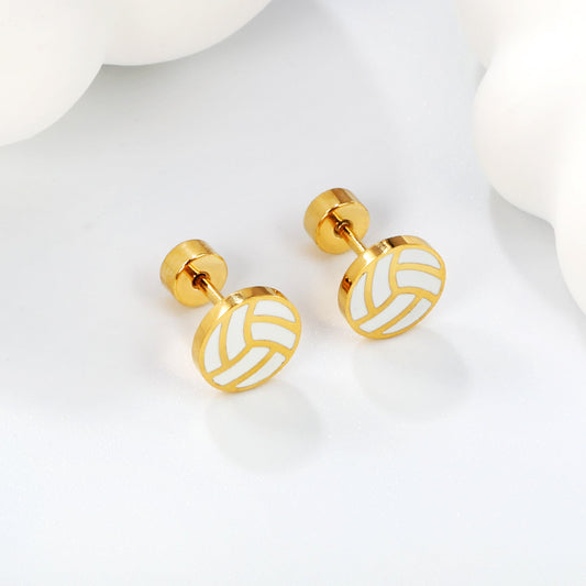 Screw plug 0.8*8mm pin volleyball with white drip earrings 7.4mm gold color