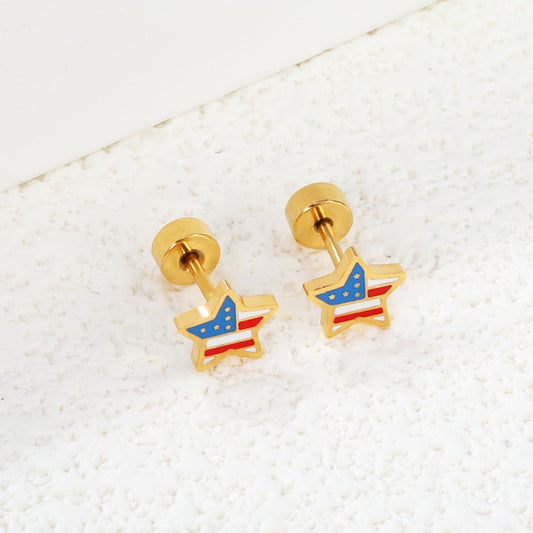 Screw plug 0.8*8mm pin pentagram with mixed color drop earrings 6.5mm gold color