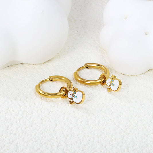 2*10mm circle + 6.7*12mm snowman with white drop earrings gold color