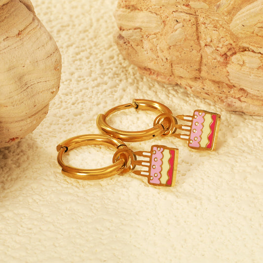 2*10mm circle +7.3*12.7mm cake with mixed color drip earrings gold color