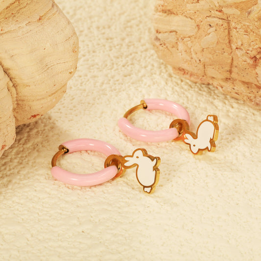 2*10mm circle with pink dripping oil+8.5*11.8mm rabbit with white dripping oil fittings earrings gold color
