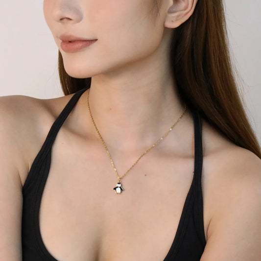 ✨🐧 Wholesale Penguin Necklace for Women & Kids | Adorable Animal Pendant | Gold Plated Stainless Steel Chain 40+5cm | Winter Theme Jewelry Bulk