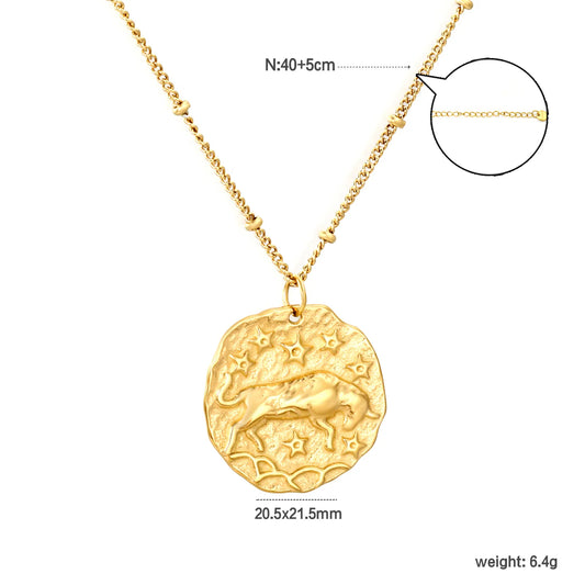 Wholesale Gold 12 Constellation Pendant Necklace | 20.5*21.5mm Zodiac Charm | 40+5cm+6mm Gold & Steel Chain