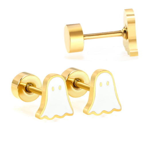 Children's Halloween Christmas models cartoon ghost twist plug earrings gold color