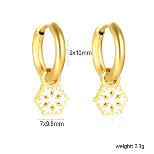 Children's Christmas snowflake shaped twisted plug earrings gold color