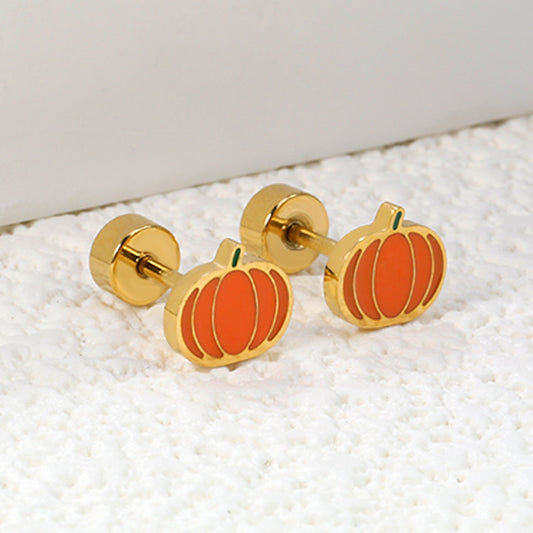 Children's Halloween Christmas models cartoon pumpkin twist plug earrings gold color