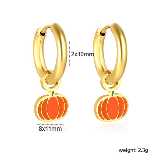 Children's Halloween Christmas models cartoon pumpkin 8 * 11mm drop earrings gold color