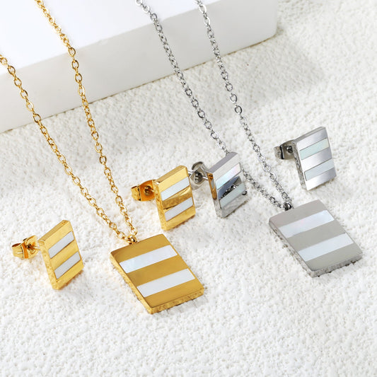 Rectangle Sticky White Shell Set Steel/Gold Earrings:9*12mm Pendant:13.5*18mm 04 Cross 45+5cm+6mm Round Plaque