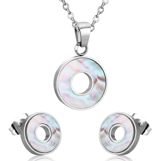 Steel/Gold Cut and Glue White Round Shells Jewelry Set