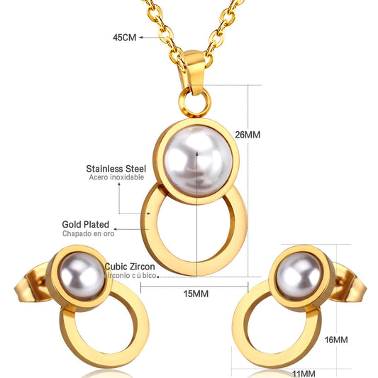 Steel/golden figure 8 shape with pearl + wisp round jewelry set