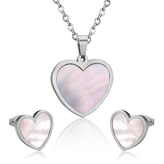 Regular price From $2.92 USDRegular priceUnit price / perSale price From $2.92 USDSteel/golden cut sticky heart white shell jewelry set