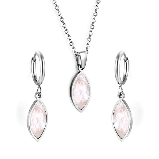 Peach Blossom Oil Drip White Jewelry Set Steel/Gold