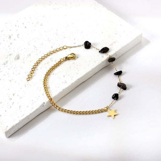 6 black zirconias + semi-matching chain with stars anklet 21+5cm gold color