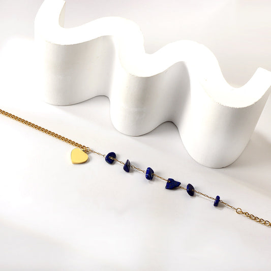 6 Blue Alien Zirconia + Half Matching Chain with Heart Anklet 21+5cm Gold Color