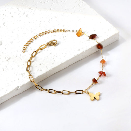 6 Mixed Color Alien Zirconia + Semi Matching Chain with Butterfly Anklet 21+5cm Gold