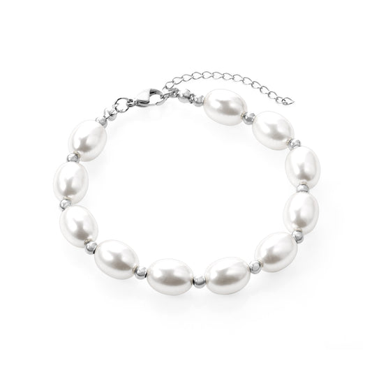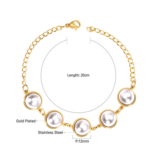 Gold White Pearls with Steel Beads Bracelet 20cm