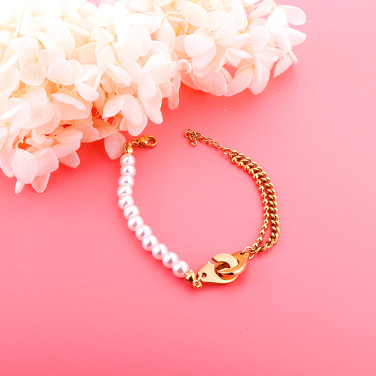 Handcuffs Accessories Bracelet with White Pearls 28cm Golden
