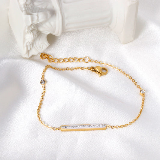 4 EKG + 3 Round Diamonds Accessories Charm Bracelet 18+3cm Gold