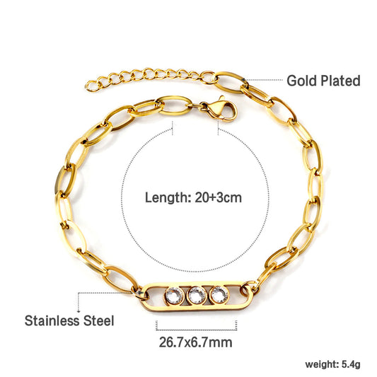 Long Accessories with 3 White Diamonds Soft Bracelet 20+3cm Golden