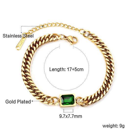 Rectangle Accessories with Green Diamonds Soft Bracelet 16+5cm Gold