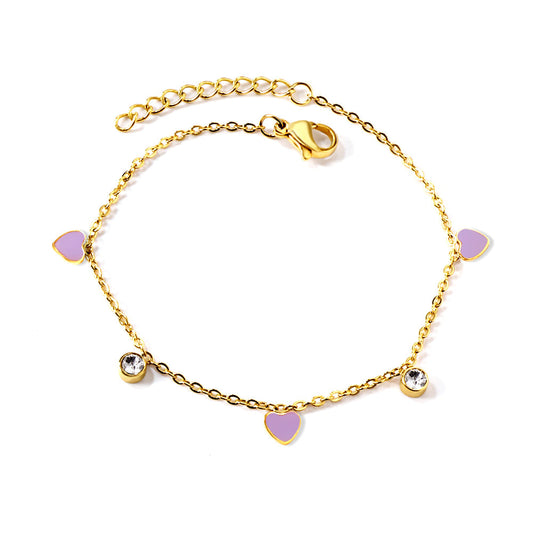 3 Hearts & Purple Oil Drops + 2 Cylindrical White Diamonds Accessories Bracelet 17+3cm