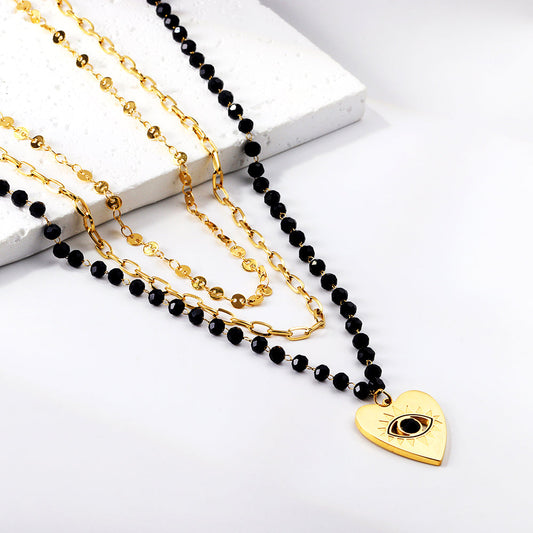 Regular price From $4.20 USDRegular priceUnit price / perSale price From $4.20 USDHeart with Black Eye Bead Pendant Black Bead Chain + Matching Chain + Matching Chain Triple Chain 52+44+38+5cm