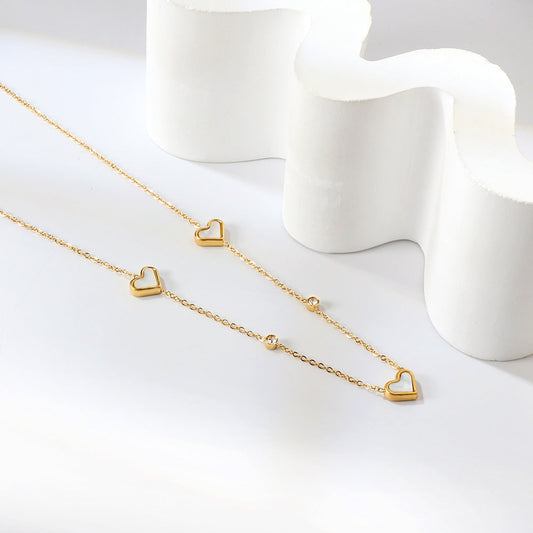 Antler Heart + Heart Pendant Necklace 41+5cm Gold Color
