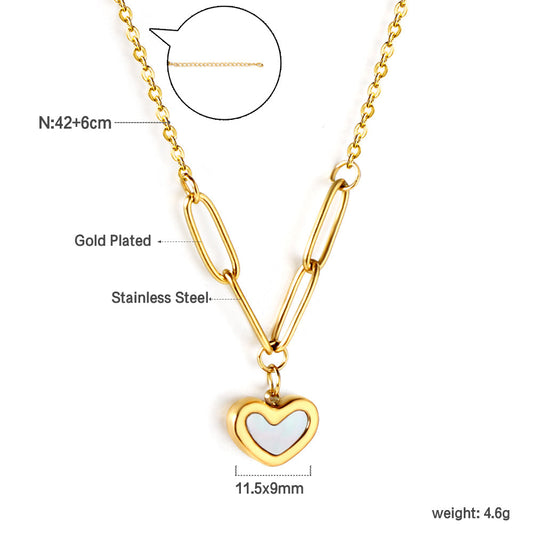 Heart Shaped White Shell Pendant Necklace 42+6cm Gold Color