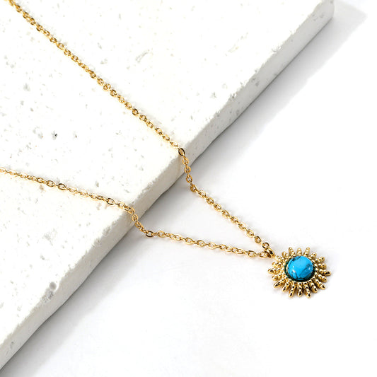 Blue Turquoise Sun Pendant Necklace 45+5cm