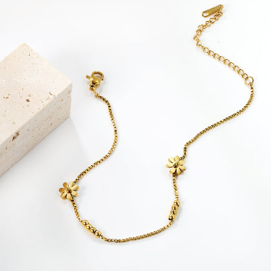 3mm*8 steel beads+7.8mm*2 seven petal flowers anklet 1.2mm*20+5cm