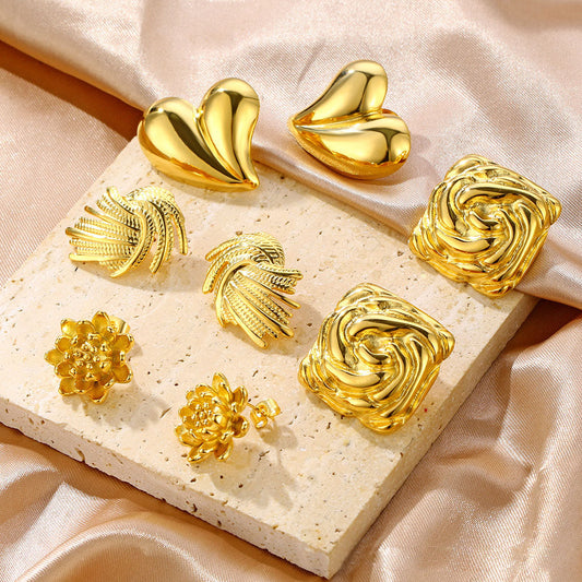 Vintage Exaggerated Style Heart Shape Personalized Earrings Light Luxury Stainless Steel Earrings