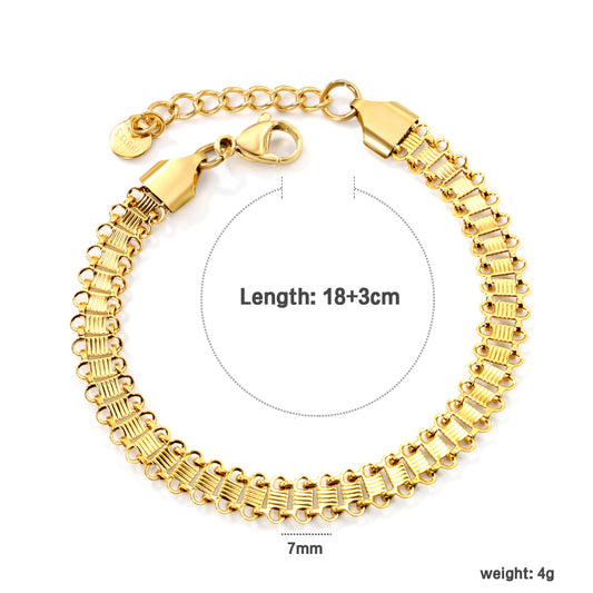 W7mm*Thick0.5mm Chain Bracelet18+3cm+6mm Round Tail Plaque Gold Color