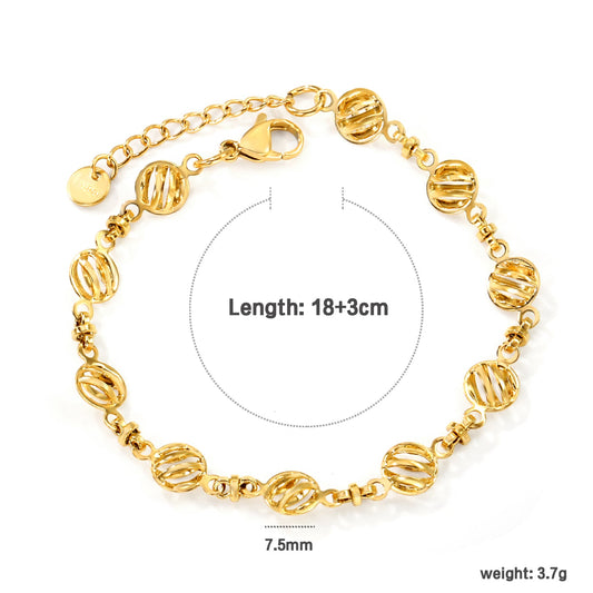 4.3mm Chain Bracelet 18+3cm+6mm Round Tail Plaque Gold Color