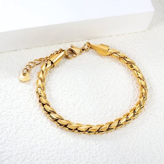 W8mm*Thick3mm Flat Snake Bracelet18+3cm+6mm Round Tail Plaque Steel/Gold