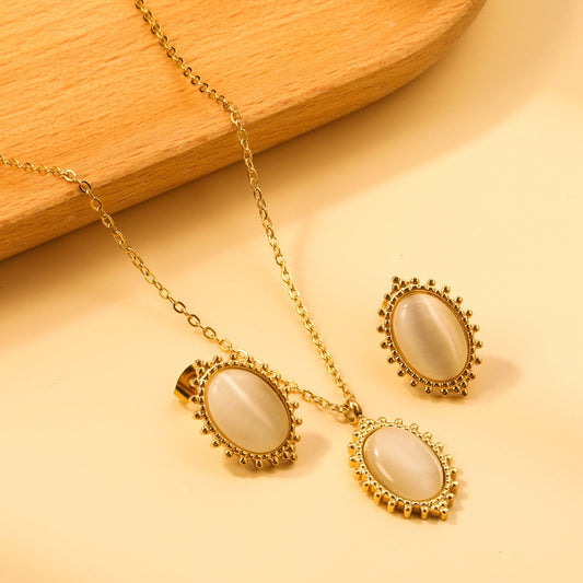 15.2*19.2mm Lace Oval with White Cat's Eye Stone Set
