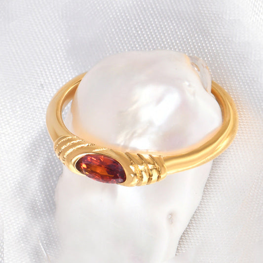 Open Band & 4 Small Lychees & Spherical Natural Stone Ring