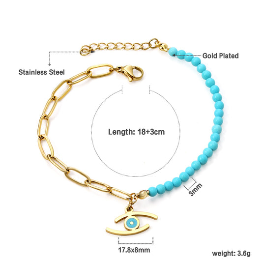 Lake blue eye pendant 17.8*8mm+blue beads+matching chain bracelet 18+3cm