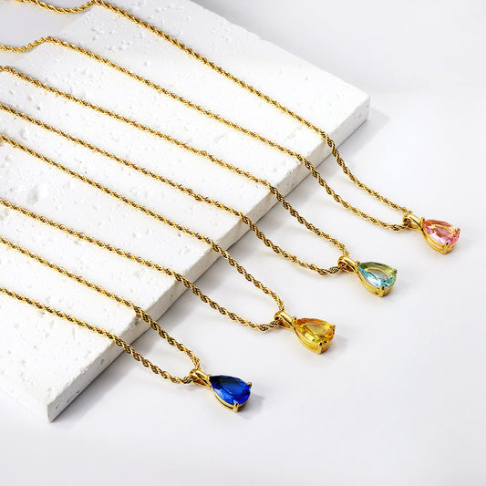 Multi-color Drop Diamond Pendant Necklace 40+5cm