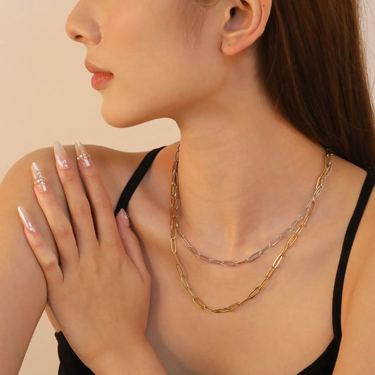 ✨ 18K Gold PVD Double Chain Necklace Wholesale (MOQ 12+) | Stainless Steel Layered Chains 🌍| Hypoallergenic Dainty Necklaces Set