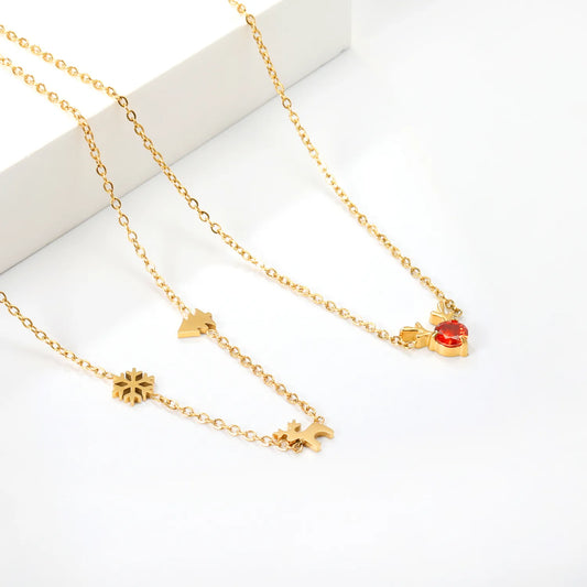🎁 Wholesale Christmas Charm Necklace | Santa/Tree/Star/Snowflake Pendants | Gold or Rose Gold Plated Stainless Steel Chain | Holiday Gift Jewelry
