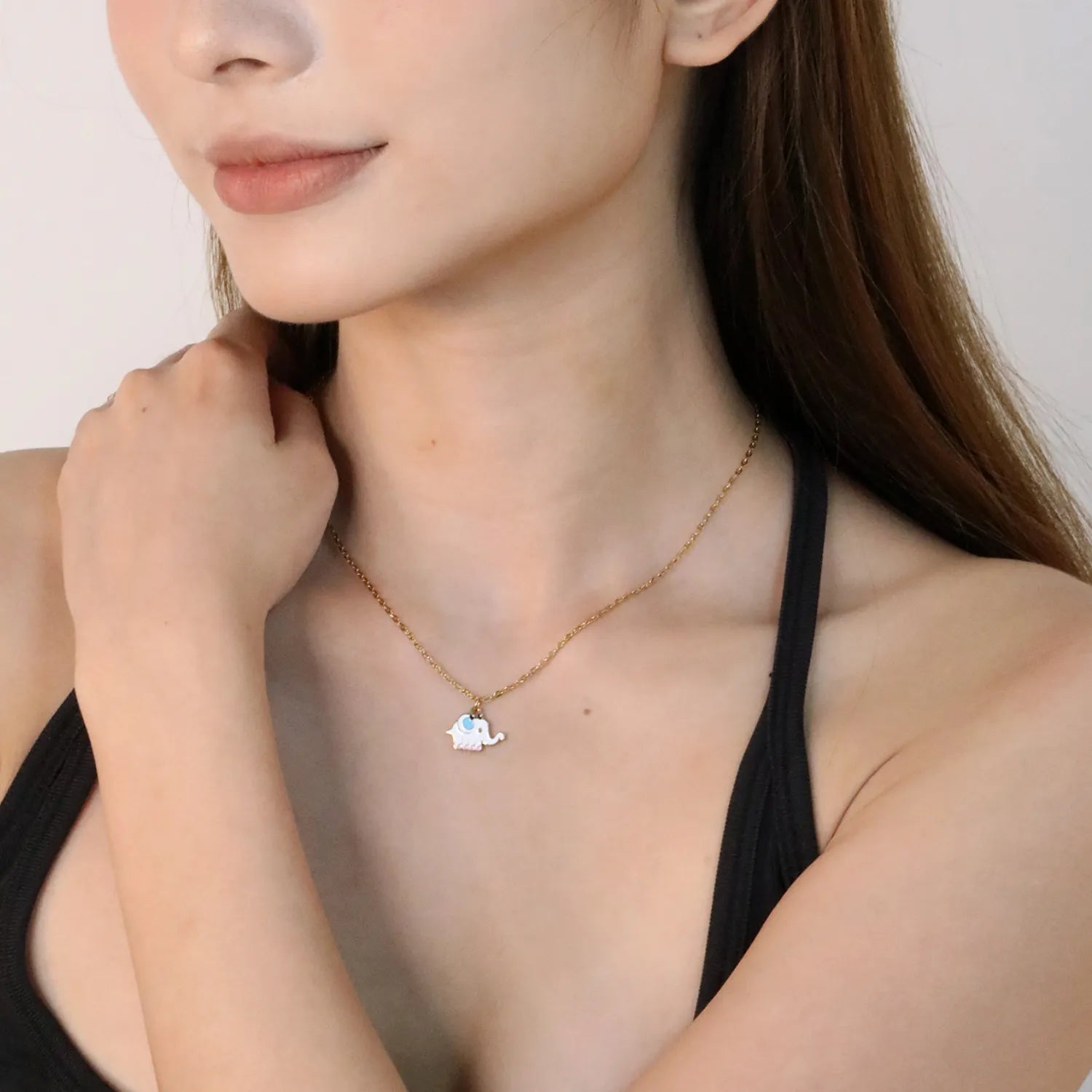 ✨🐘 Wholesale Elephant Necklace with White Enamel | Lucky Animal Pendant | Gold Plated Stainless Steel Chain 40+5cm | Cultural Symbol Jewelry Bulk