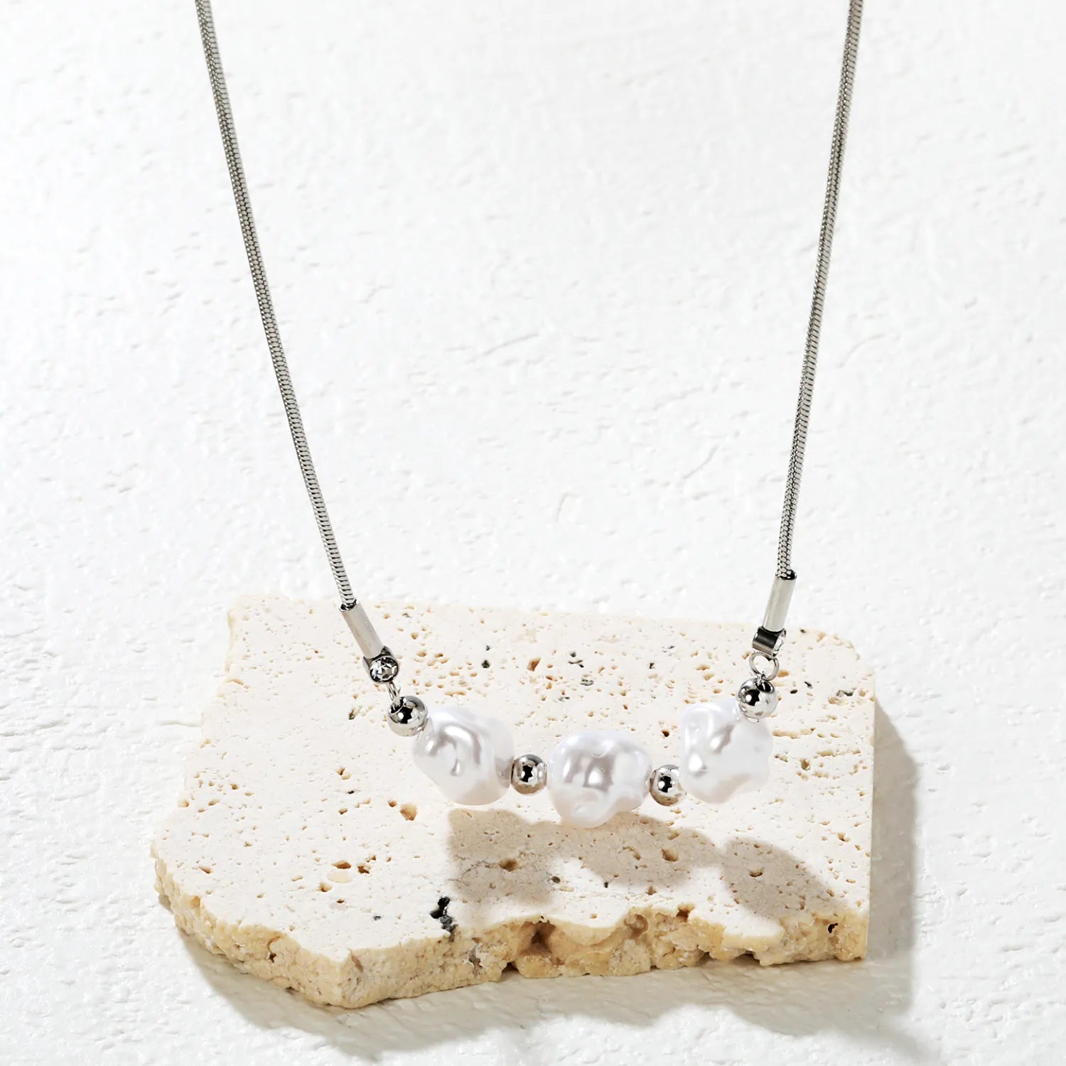 ✨ 18k gold plated Pearl With Ziron Stainless Steel Necklaces Wholesale (12+ Pieces) | Hypoallergenic & Tarnish-Free 🌍 | Trendy Pendants & Chains