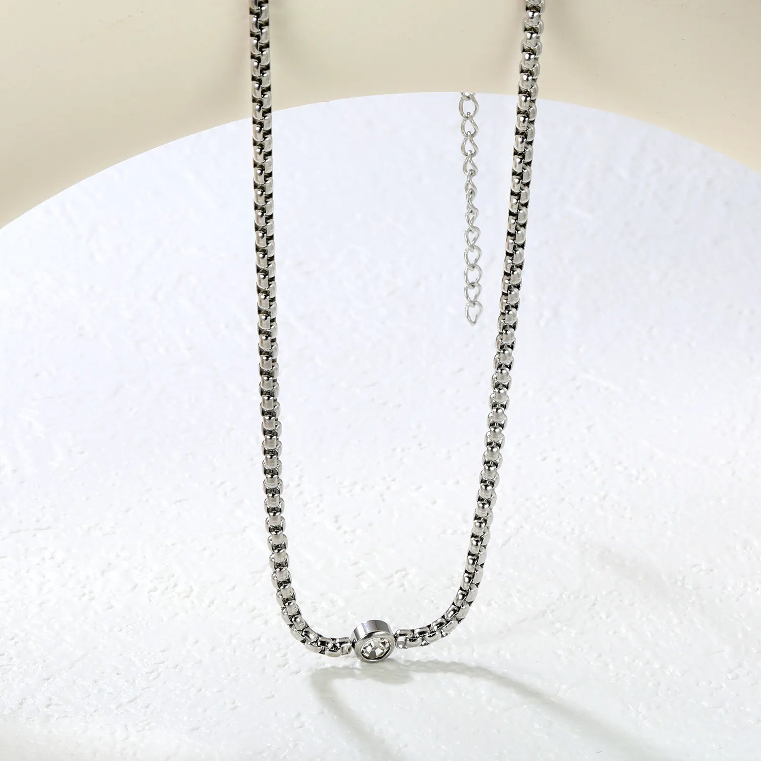✨ 6mm White Diamond Pendant Necklace 2.8mm Slim Chain 46+5cm | Stainless Steel Silver/Gold | Wholesale Minimalist Jewelry