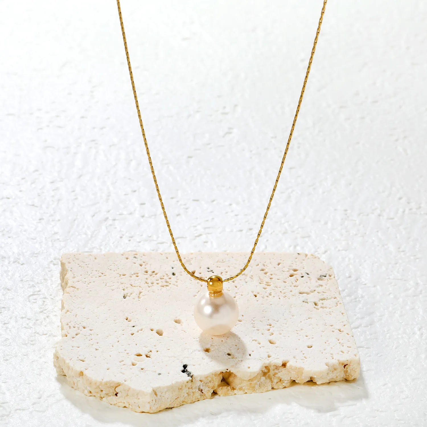 ✨ Wholesale 18k gold plated 10mm Pearl Pendant Necklace | Gold Stainless Steel Chain 42+5cm Classic Jewelry Bulk